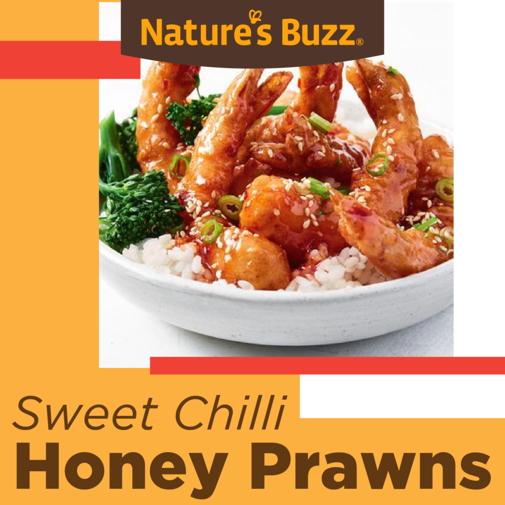 Sweet Chilli Honey Prawns, is a sensational fusion of succulent prawns, sweet Nature's Buzz honey, and a hint of chilli. This quick and easy recipe delivers a balance of flavours, creating a seafood dish that's simply irresistible.